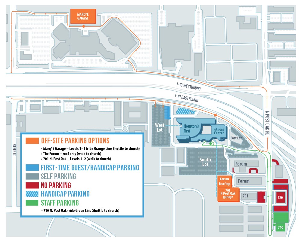 On Sunday mornings, members and regular attenders of Houston's First are asked to use shuttle parking locations so first time guests and those with physical limitations can park on campus. This simple act of making room for more people to attend our church is one of the most simple yet impactful ways you can help spread the Gospel message.